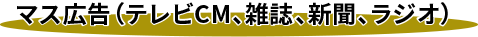テレビCM、雑誌、新聞、ラジオの4大マスメディアに対して出稿する広告です。